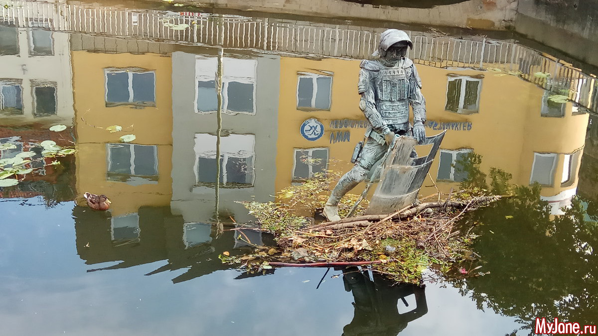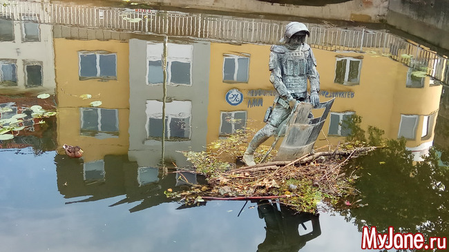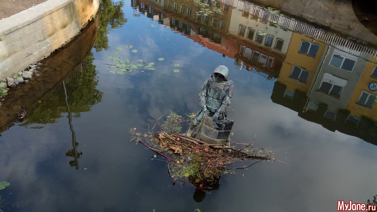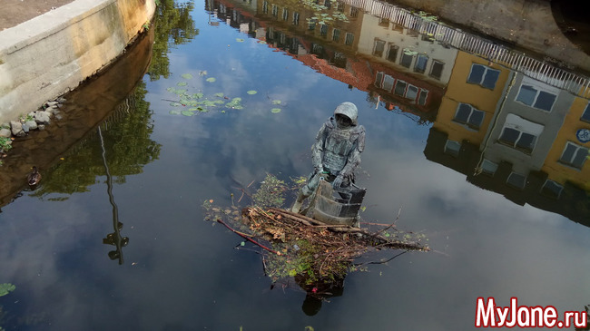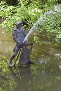 Писающий рыцарь... Похож на рыцаря. Если бы просто смотрела на фото без описания - так бы и подумала что это рыцарь. Смешно. И правда, чего ему в луже стоять со своим фонтанчиком? Да и мелковат. Несолидный какой-то.