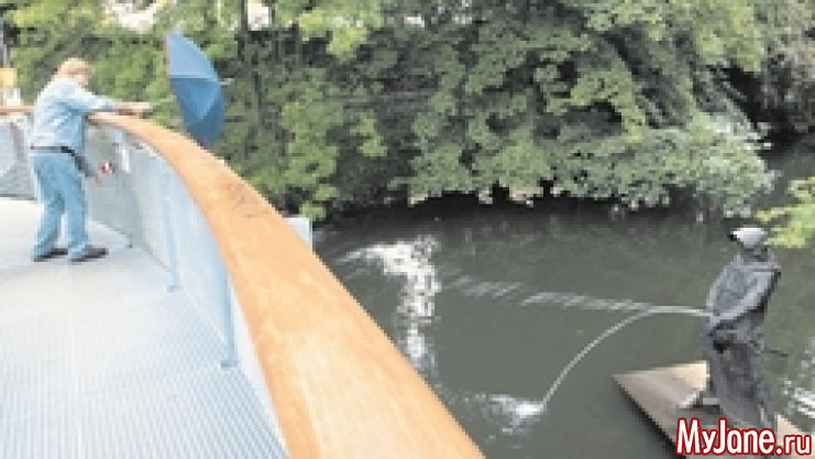 Идём дальше через мостик, где нас уже ожидает бронзовый "Писающий рыцарь".
