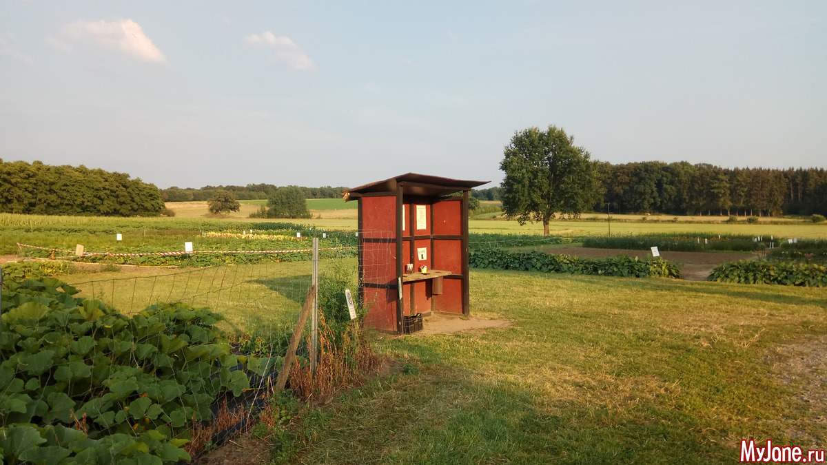 У дороги стоит лишь домик, где лежат ножики и ножницы, которыми можно попользоваться составляя свой букет