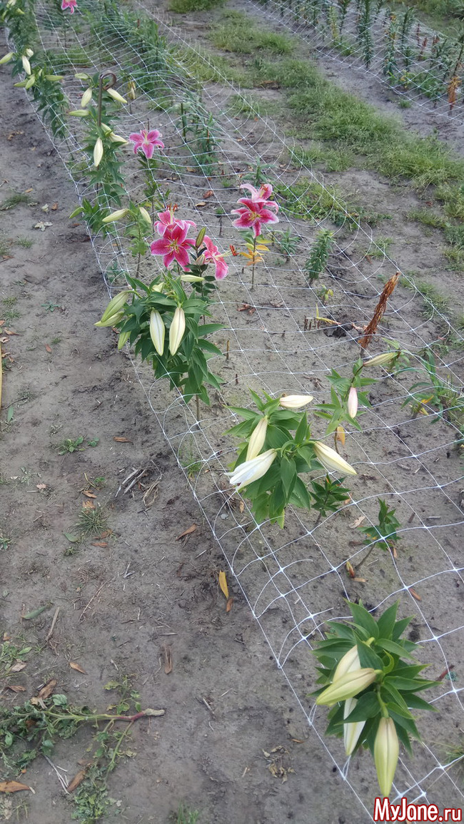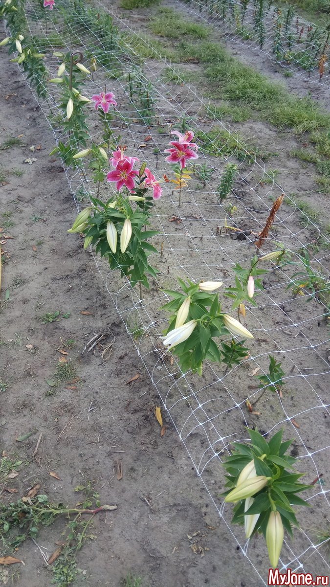 Как интересно растут лилии и гладиуолусы. Интересно, как они так сетку укладывают