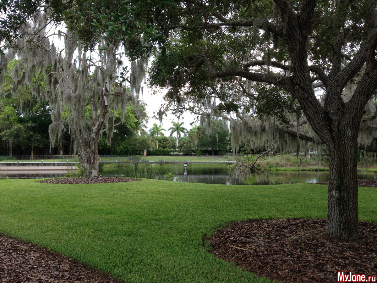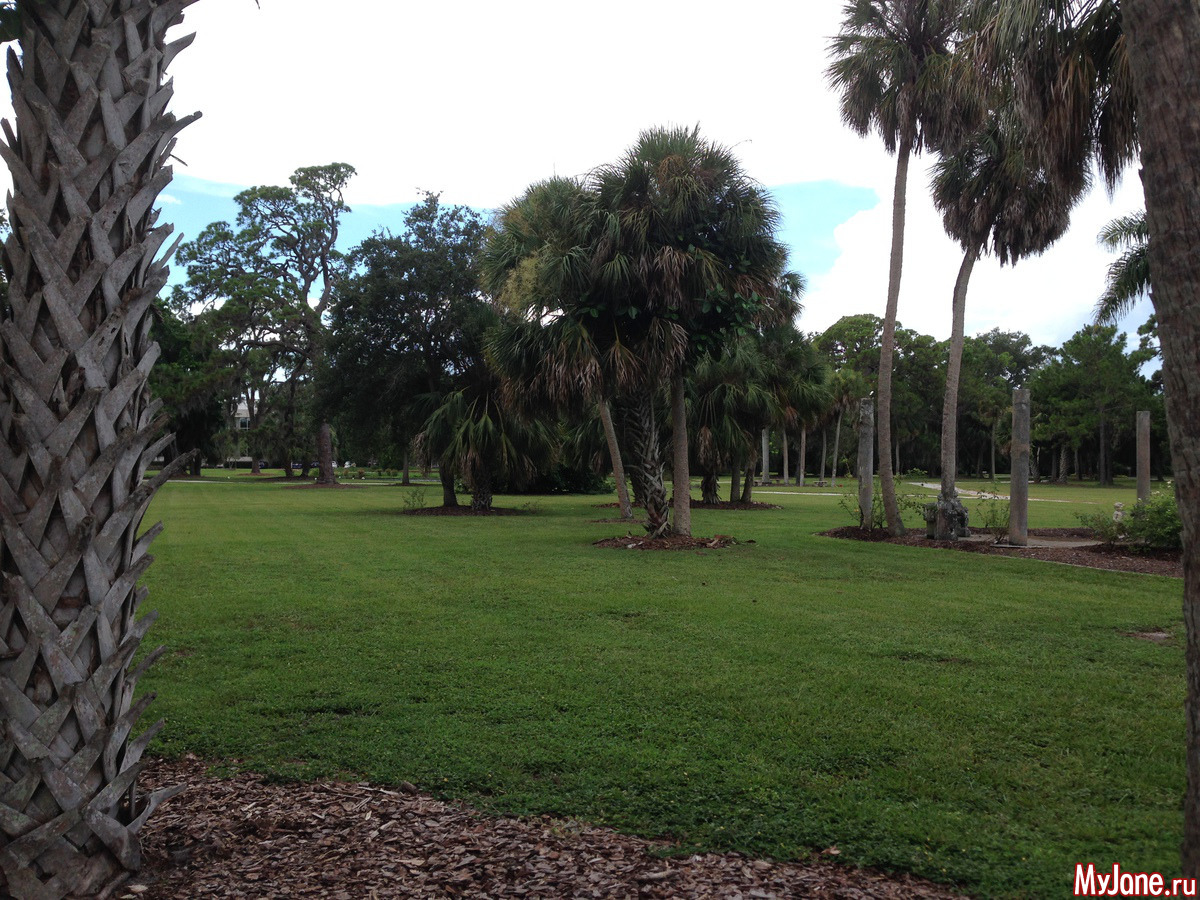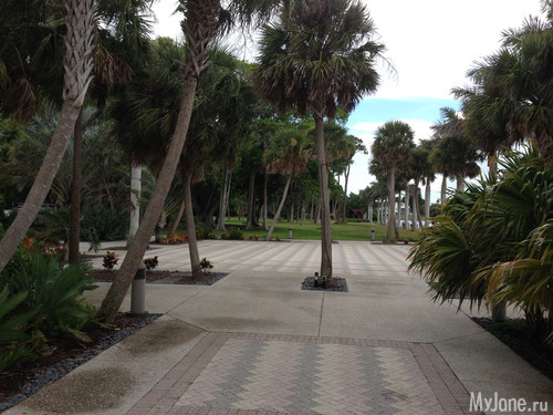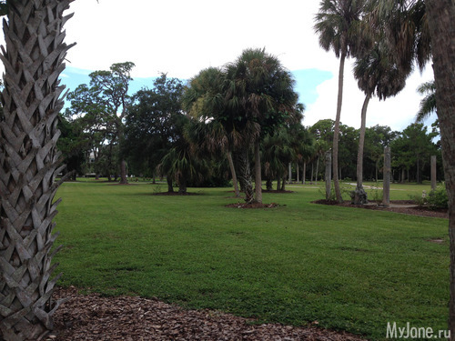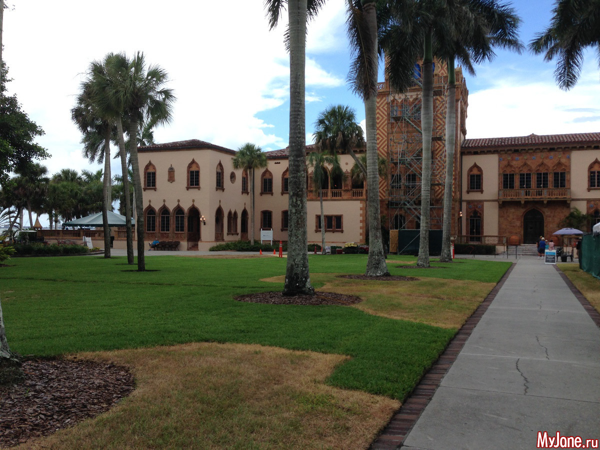 Искала в интернете куда бы ещё съездить в Сарасоте... Нашла интереcное место-усадьба и музей искусств создателя американского цирка, Ринглина. Это конечно что-то! Вначале я просто нашла усадьбу. Поехали туда, но там нужно было заказывать экскурсии, если мы хотели попасть внутрь. Время для нас было совсем неудобное. Нам разрешили прогуляться по территории усадьбы, что мы с удовольствием и сделали. Гуляем мы такие, а на территории стоят какие-то пaвильоны. Ну пaвильоны, и пaвильоны... Мы думали, что скорей всего там какие-то развлечения для детей. Когда мы пришли в эту усадьбу, просто думали что там в начале 20-го века жил какой-то богач. Потом муж увидел фамилию Ринглин и сказал, что помнит, что в Штатах в начале 20-го века был цирк Ринглин, и этот цирк был не просто популярен, а мега-популярен, поскольку тогда не было не телевидения, ни интернета. То есть цирк этот ждали в каждом городе и это было событие года наверно. Там не просто был небольшой цирк, а основывался целый город с огромным павильоном внутри, и другими поменьше вокруг него. Продавали всякие сладости, помимо цирка были и уличные выступления. Короче целый фестиваль. И помимо цирка ещё был цирковой парад со всеми животными и артистами. Послушала я эту мини-лекцию муженюльки, и мы пошли далее гулять.