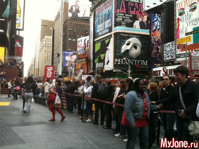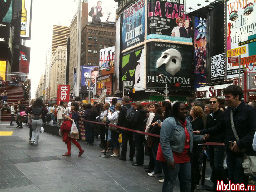 Очередь на Бродвее за билетами на мюзикл "Призрак Оперы"