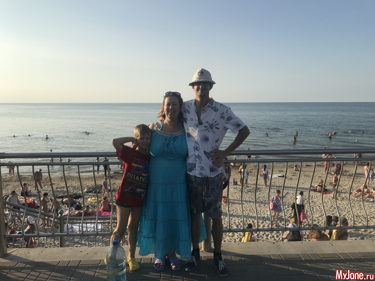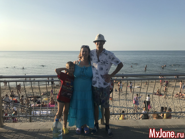 Водичка шикарная! Прохладная, я долго заходила в воду, но когда окунулась, уже не хотела вылезать. Илюхин бодро и борзо нырял с края волнореза - там глубина такая, что я стою на цыпочках. Зато Серёгу быстро укачало и он смотрел на нас с берега.
