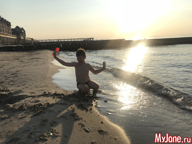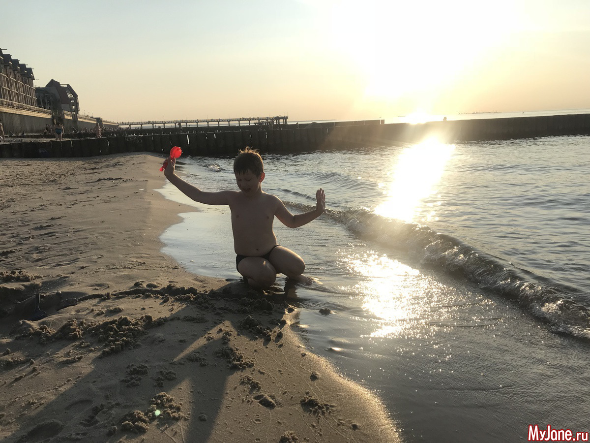 В эту пятницу мы после работы поехали на море. Хотели съездить на Куршскую косу, мы за полгода в Калининграде ни разу там не были. Но было уже поздно, мы же хотели покупаться, а ехать далековато. Поэтому поехали в Зеленоградск на городской пляж. Илюхин был на низком старте с того момента, как мы спустились на пляж, а когда нашли место, где можно остановиться, герой на сверхзвуковой скорости уже ускакал в море! На бегу снял футболку, бросил её и, как мне показалось, еще до того, как футболка упала, он уже занырнул!