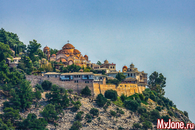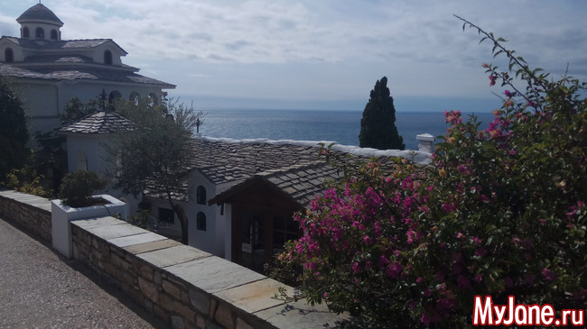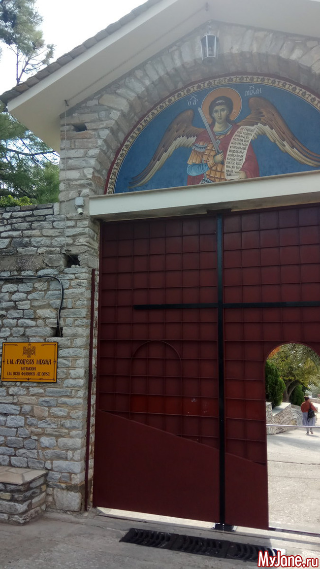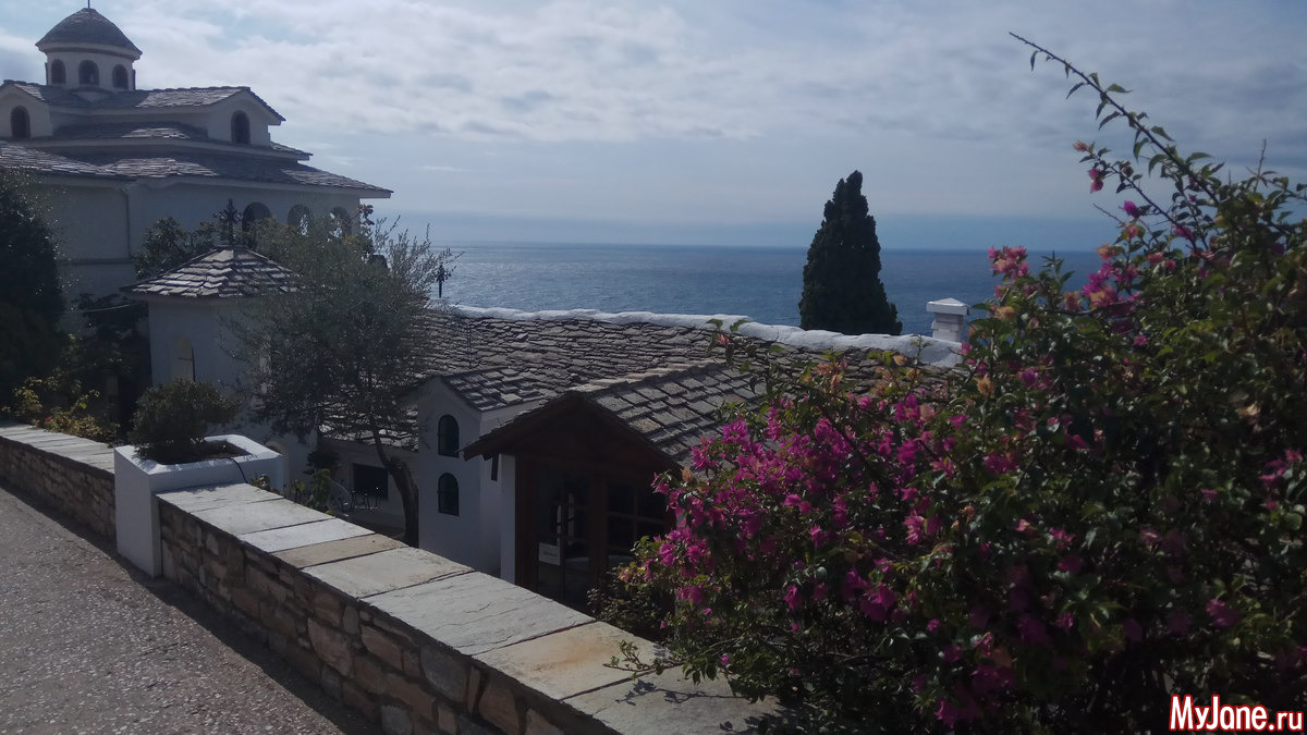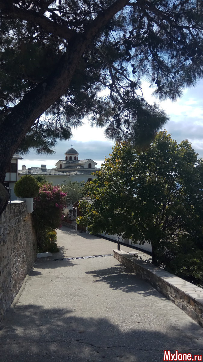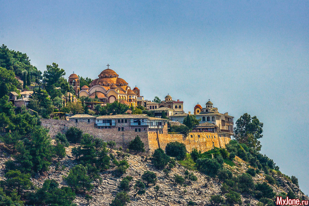 ) и в действующий женский монастырь Архангела Михаила (очень красивое место Монастырь Архангела Михаила расположен на высоте 250 м над уровнем моря на краю крутого живописного обрыва, с вершины которого открываются захватывающие панорамные виды на бескрайние просторы Эгейского моря и виднеющуюся вдали Святую гору Афон. Святая обитель построена в виде крепости и поражает своим великолепием и красотой. На территории монастыря имеется главный Кафоликон, построенный в 1834 году, две небольших часовни (Святого Ефрема и Святого Герасима), монашеские кельи и гостевые помещения, а также мастерские, где монахини занимаются иконописью, пошивом церковных облачений и вышивкой.
