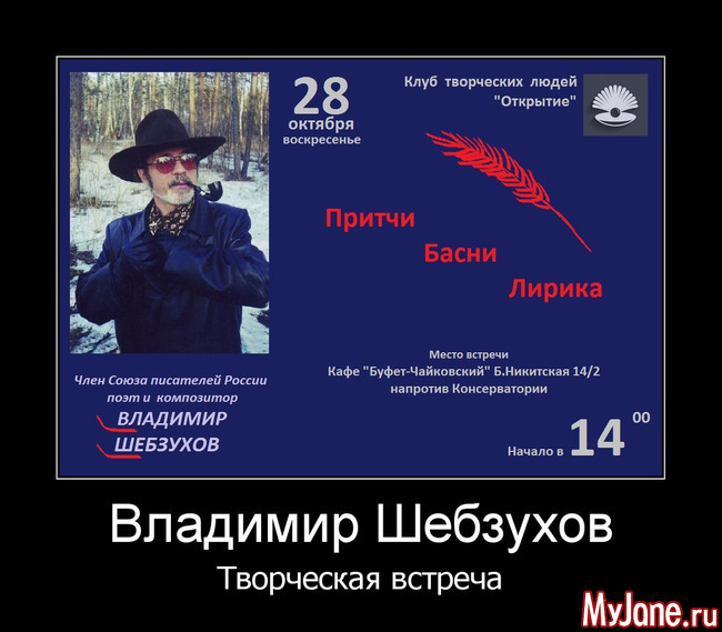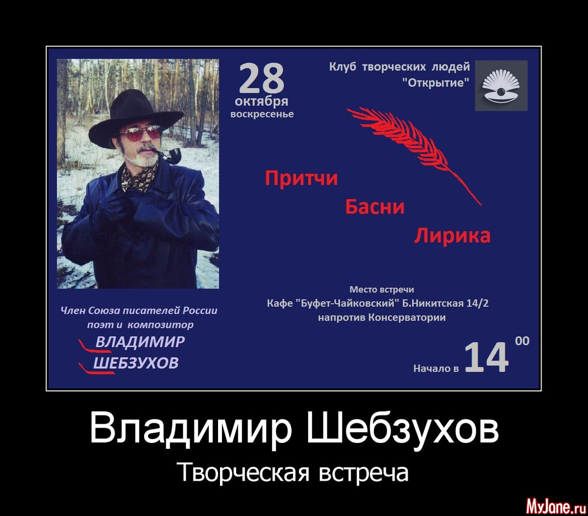 Творческая встреча с московским поэтом-баснописцем членом СП России Владимиром Шебзуховым м. Арбатская (Арбатско-Покровская линия) 445 м