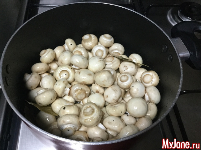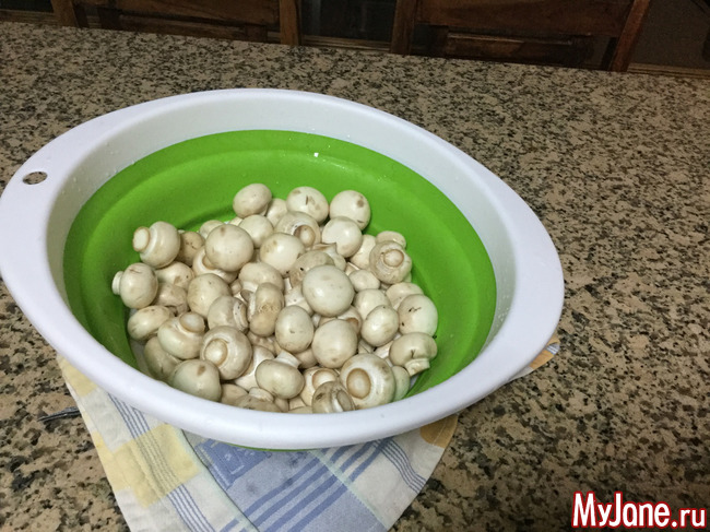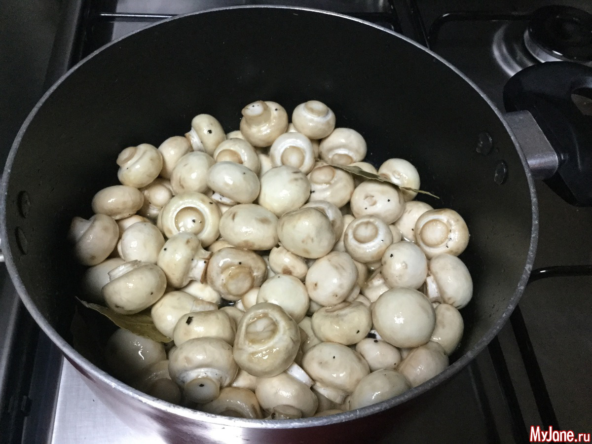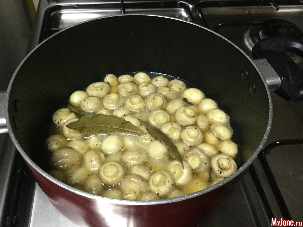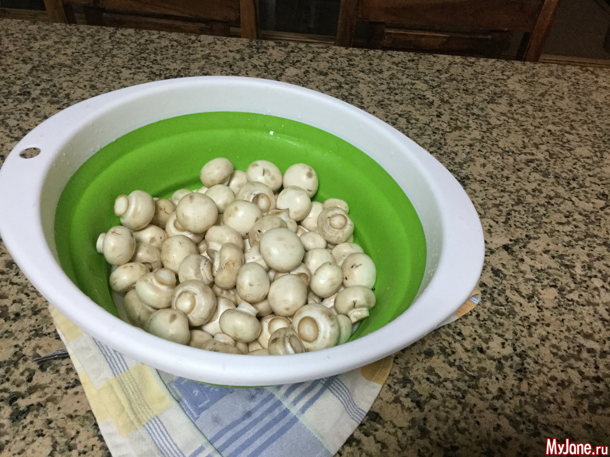 Добавить туда помытые грибы. В этом случае как раз таки хороши мелкие грибочки.