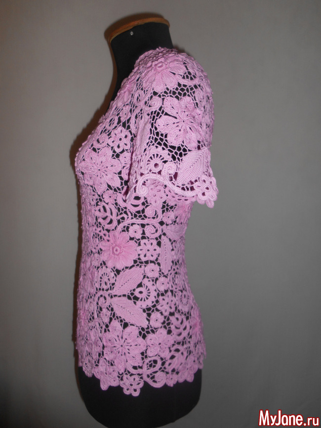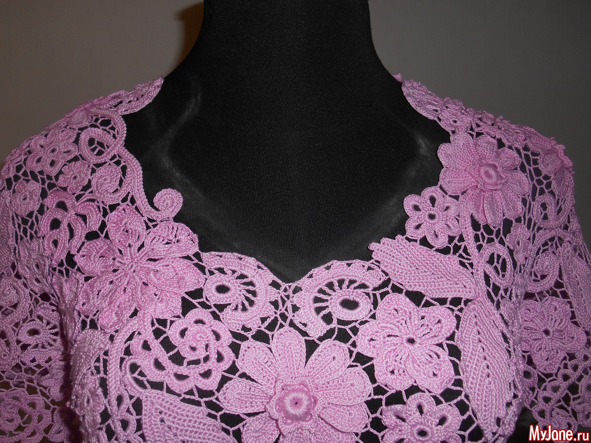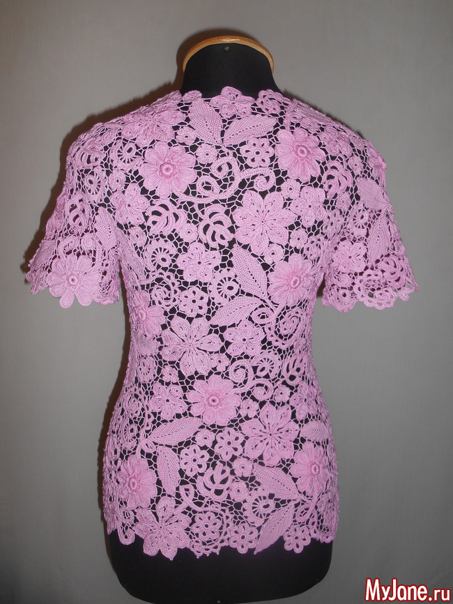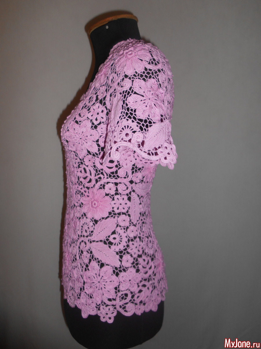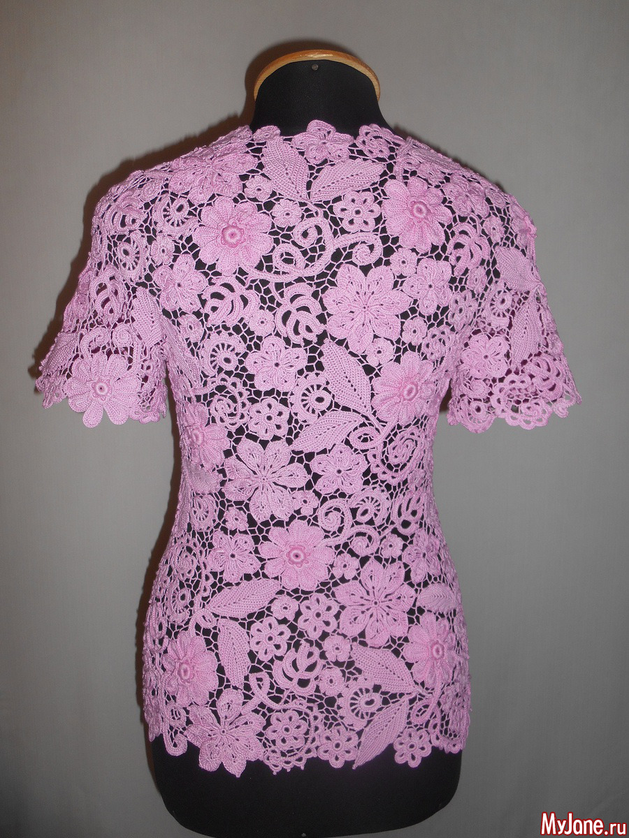 Кофточка " Розалина". Выполнена в сложной технике наборного ирландского кружева из хлопка Виолет на мотивы и Канарис на сеточку, крючок 1,0 и 0,6.