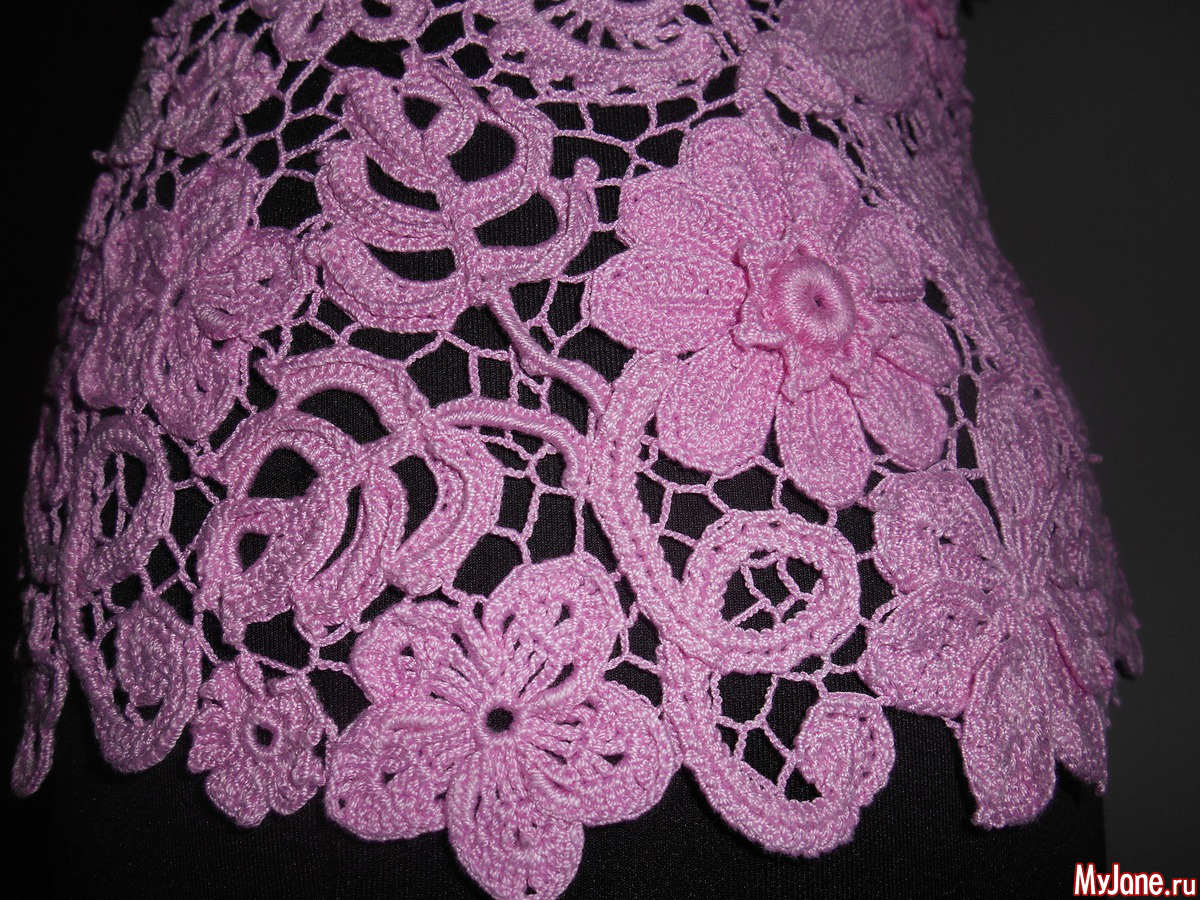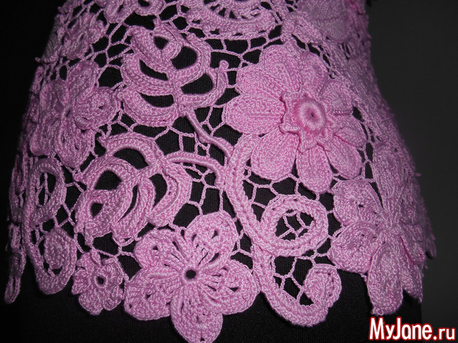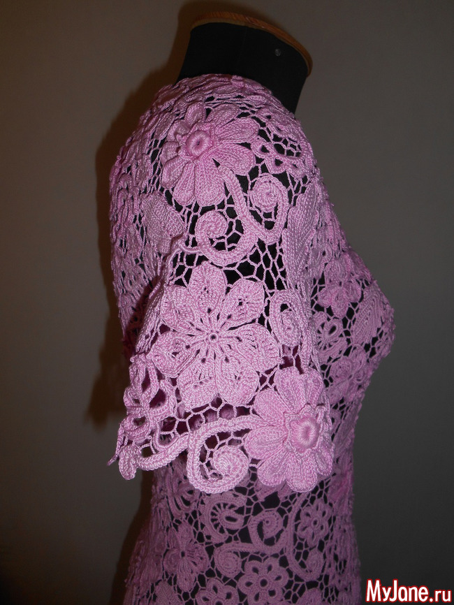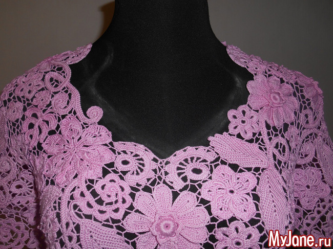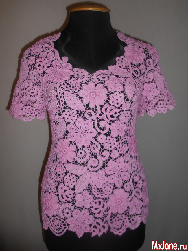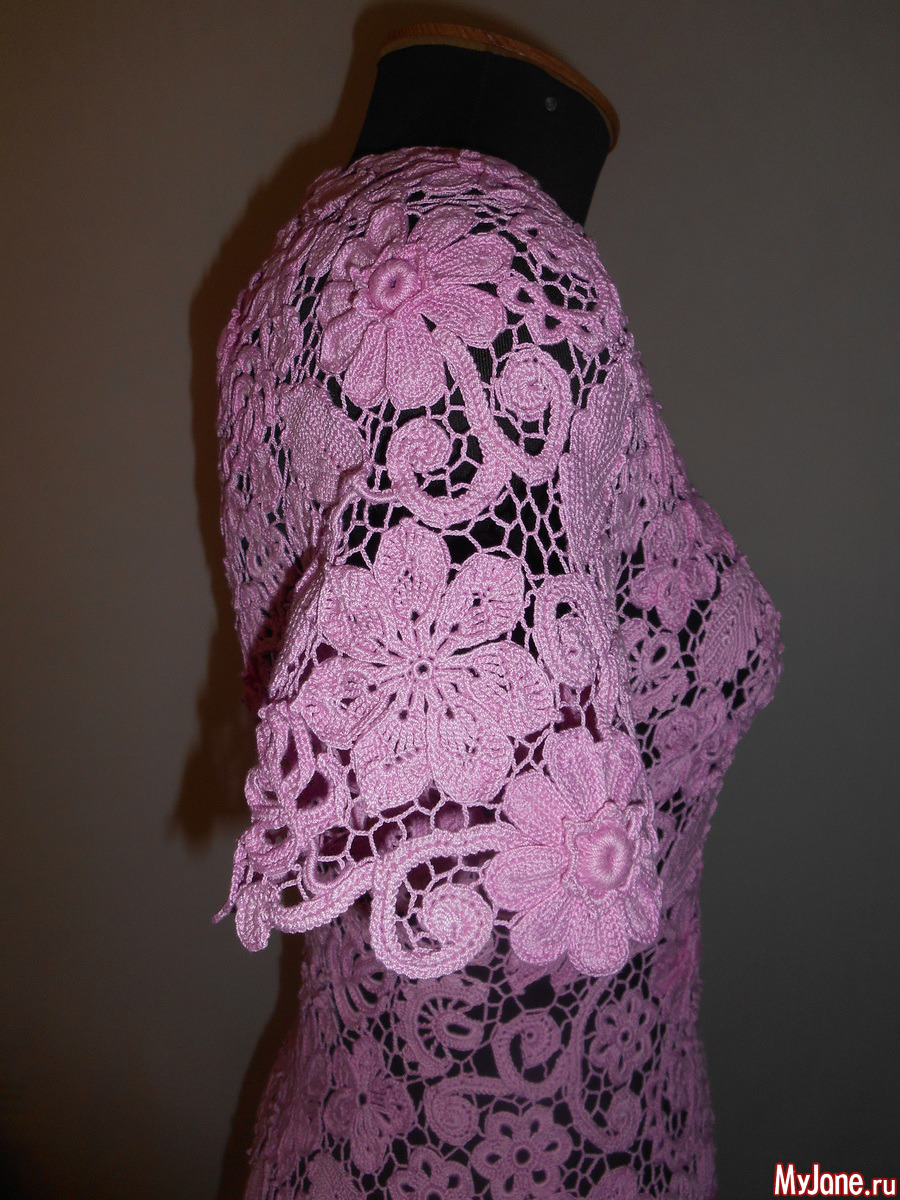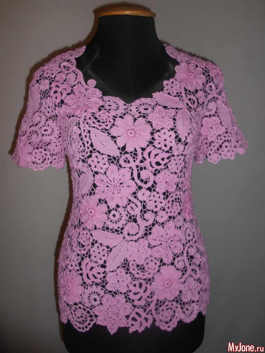Кофточка " Розалина". Выполнена в сложной технике наборного ирландского кружева из хлопка Виолет на мотивы и Канарис на сеточку, крючок 1,0 и 0,6.