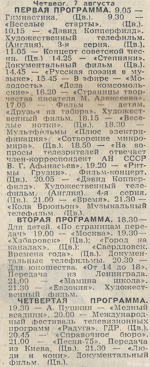 А теперь посмотрим программу ТВ за 1975 год. И что мы видим? Что в 21:00, когда идет программа время, по второй и четвертоой программам, идут другие передачи. Т. е. выбор все же был...