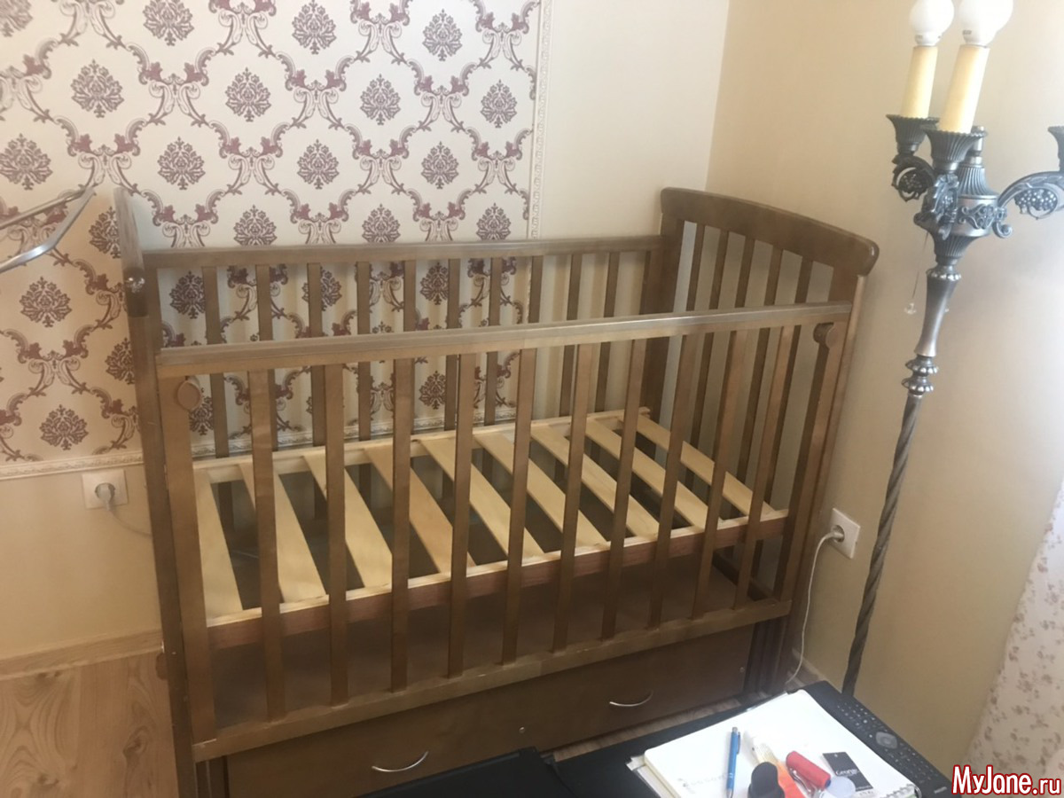 Девочки в чате мне быстро объяснили, что я зря заморачиваюсь и что лучше отдельная кроватка и отдельный комод. Кроватку не надо навороченную и нет ничего стрёмного в б/у. Я для себя решила, что мне нужна кроватка с ящиком и опускающимся бортом. Вчера я нашла объявление, девушка продавала кроватку и комод буквально за копейки. У кроватки было всё, что мне нужно. В подарок она еще отдала мягкие бортики, кокосовый матрас и радионяню. Матрас, скорее всего, пойдёт на мусорку, если я не придумаю, как его использовать, а радионяня пусть будет.