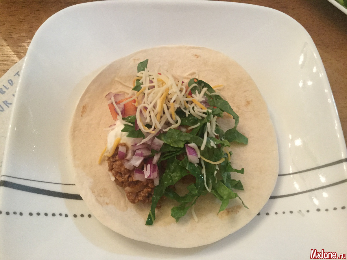 Мы с мужем очень любим пробовать блюда других стран. Некоторые я "переделываю под нас", и готовлю дома. Одно из таких блюд (латино-американское) тако. Тако-это лепешки из обычной муки и воды (все просто), которые подаются с мясом и овощами. В принципе, ничего нового, у каждого народа мясо, хлеб и овощи-это основа почти всех блюд. Что отличает блюда-это соусы и специи, ну и пропорции ингредиентов. В Штатах огромное количество самых разнообразных ресторанов различных кухонь мира, и мексиканский ресторан-одно из таких "разнообразий". Там вам приготовят и тако, и чили, и флаутас, и фахитос, и еще кучу всяких латино-американских блюд. Есть здесь и забегаловки типа "мексиканских", например, Taco Bell. Там тоже готовят эти самые тако.