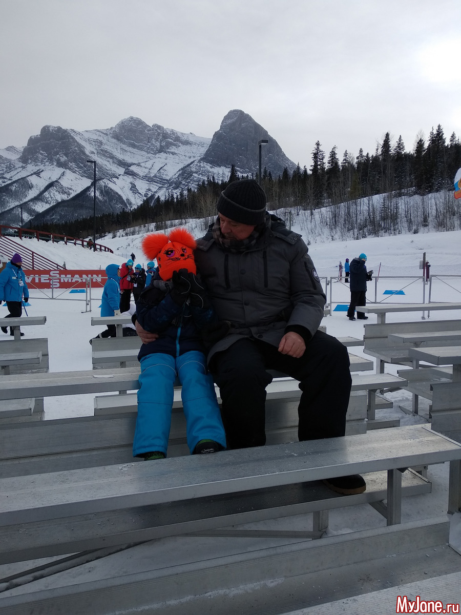 А знаете что было самым классным? Это возможность пообщаться с атлетами. Один из канадских биатлонистов ехал назад в Кэнмор в нашем автобусе с болельщиками. Когда он зашел ему все дружно похлопали и поблагодарили за выступление. Биатлонисты шли на автобысы по той же дорожки что и болельщики. Мама подловила половины франзузкой сборной для фоток, причем она попросила сфоткаться только Симона Фурката, а еще один француз сам подошел для фотки. Мама очень болела за Логинова и была безумно рада тому что он согласился сфоткаться. А вот Гораничеву было холодно или просто не захотел остановиться на секунду для фотки (фу таким быть!). Йоханесс Бьё вообще отдал маме, лично в руки, пакет с подарком. Там была коробка от его медали и декоративная керамическая тарелка. И вот это вот живое общение в атлетами помогало выстоять/выпрыгать/вытанцевать всю длину соревнований на улице несмотря на ветер и облачность и вообще аццкий дубак.