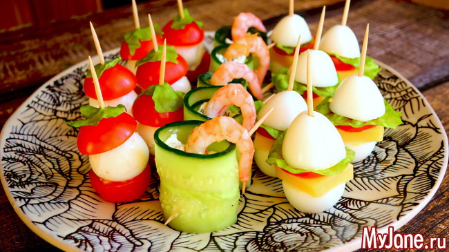 1. Для приготовления закуски из помидор и моцареллы: помидорки разрезать на две части, на шпажку одеваем верхушку помидорки, за ней (с низу) шарик моцареллы и вторая половинка помидорки, сверху добавляем листик салата или базилика.