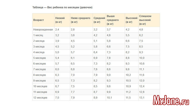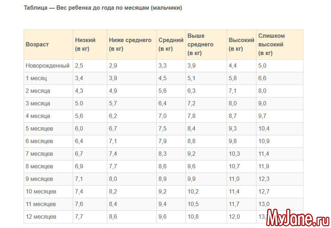 Прибавка веса новорожденного ребенка по месяцам распределяется в следующем темпе: с 1 по 3-й месяц — в среднем 750 г, с 4 по 6 — 700 г, с 7 по 9 — 550 г, с 10 по 12 — 350 г.