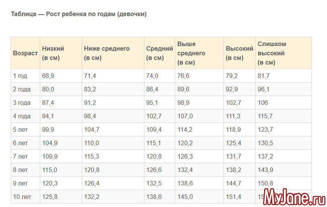 Интенсивный рост у девочки наблюдается от 10 до 12 лет.