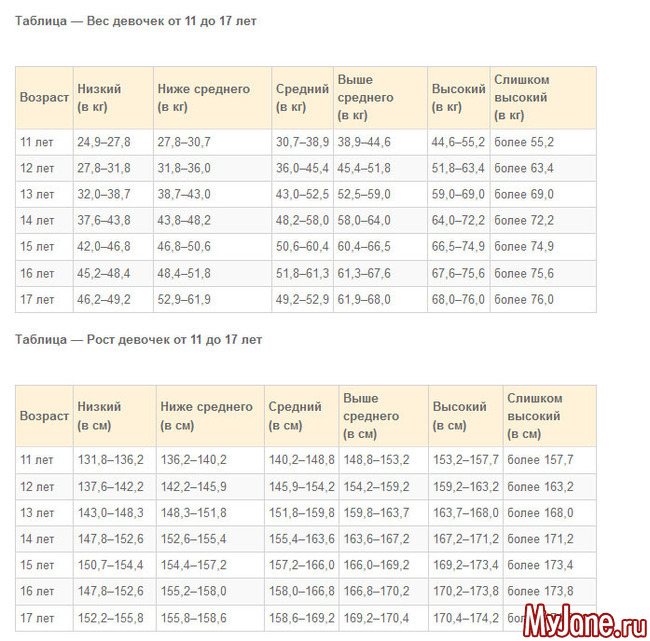 Показатели для девочек и мальчиков от 11 до 17 лет