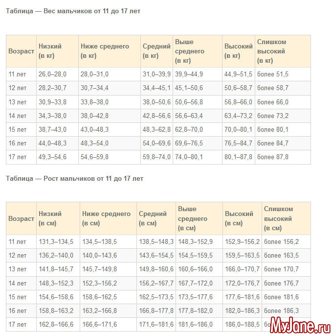 Интенсивный рост у мальчика, как правило, начинается позже — с 13 до 16 лет.