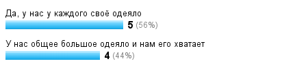 Моя бабушка говорила, что разные одеяла у мужа и жены - это прямой путь к разводу. И лет 50 она спала с дедушкой под одним общим ватным, не хотела идти по этому прямому пути.