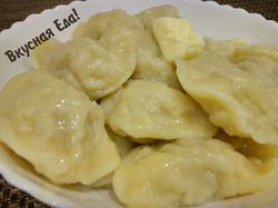 11. Когда они всплывут, поварите их еще 5-6 минут. Вареники с фаршем готовы. Выложите их в тарелочку, добавьте сливочное масло.