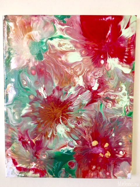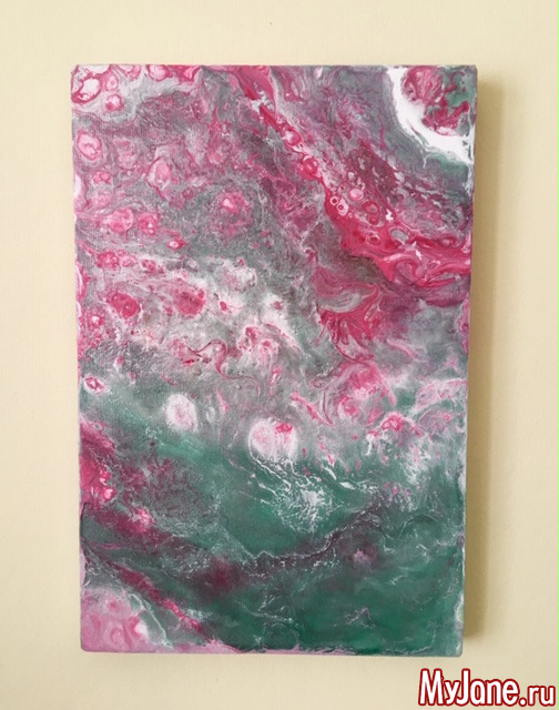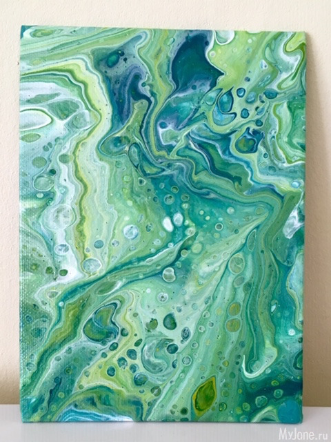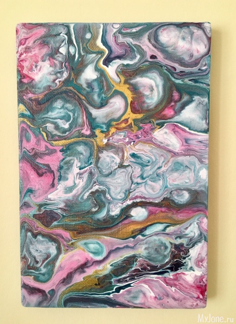 "Кто сказал, что рисовать можно только кистью — чепуха. Фантазия, техника, холст и немного акриловой краски нужно для картины в стиле ART-DECO или FLUID-ART. Эта техника называется жидкий акрил. Обязательно попробуйте."
