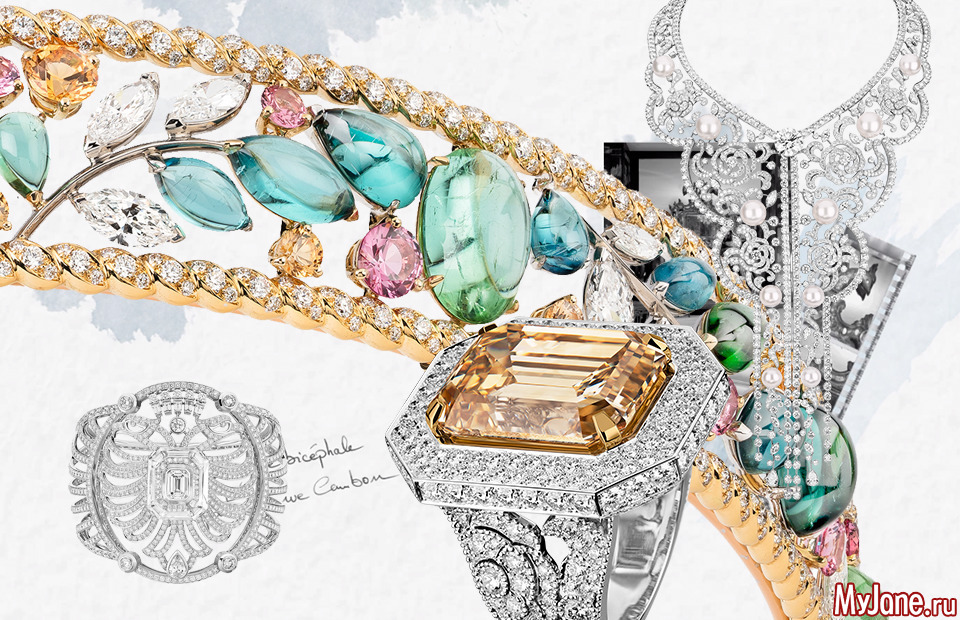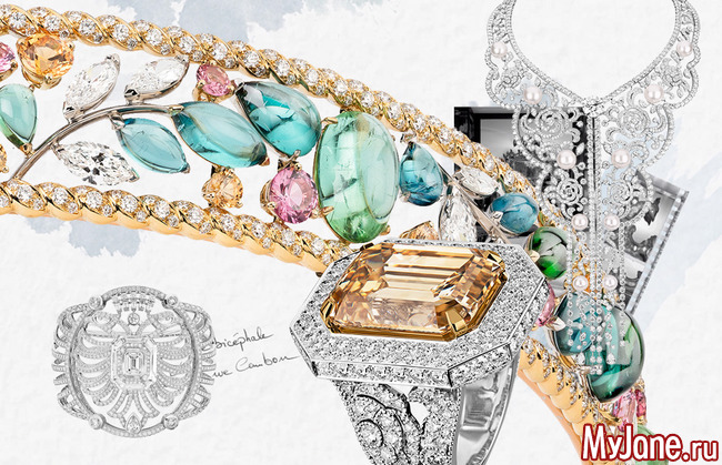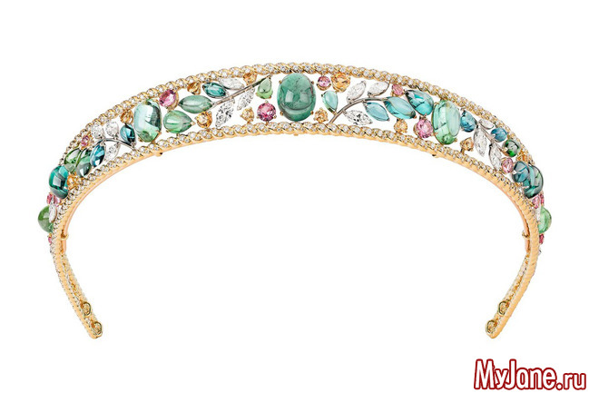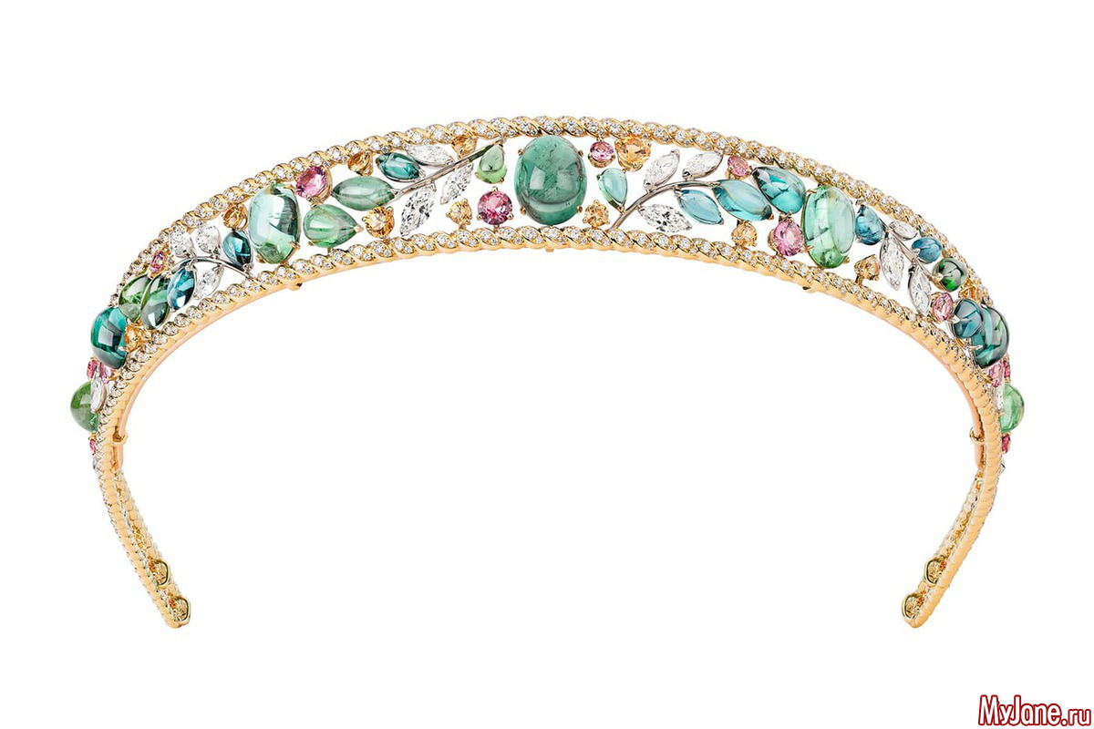 Тиара ’Ble Maria’ из коллекции Chanel ’Le Paris Russe de Chanel’ из белого и желтого золота с розовой шпинелью, сапфирами, гранатами, зелеными турмалинами и бриллиантами