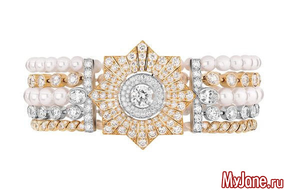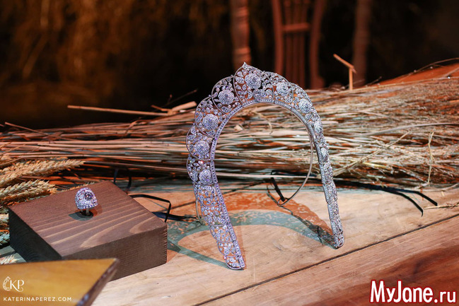 Кольцо и кокошник-колье ’Sarafane’ из коллекции Chanel ’Le Paris Russe de Chanel’ из белого золота с бриллиантами и жемчугом