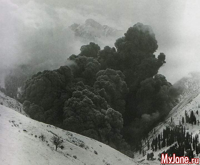 Для создания в фильме военных действий пиротехники подготовили несколько взрывов. Чем и спровоцировали очень сильную ударную волну направленную в сторону гор. Через какое-то время начали слышать непонятный шум...., а затем пошло сползание снега и .......