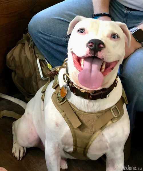 4. «Знакомьтесь: Танк. Он не знает своего имени, потому что глухой. Но это не помешало ему стать моим лучшим другом и отличной служебной собакой».