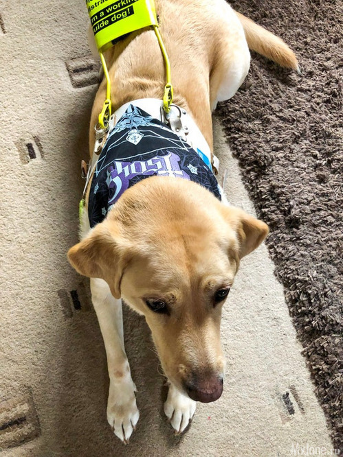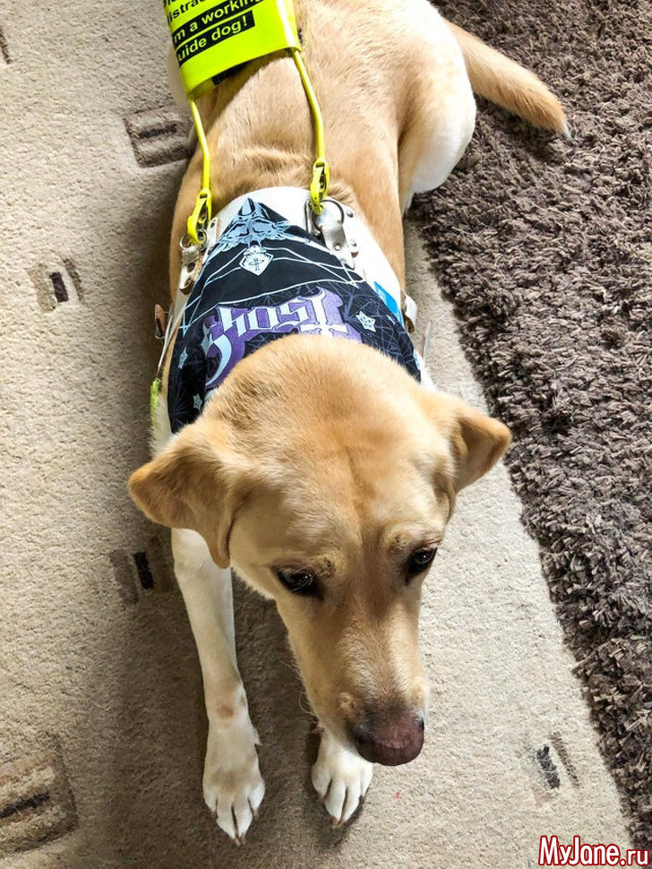 8. «Моя чудесная собака – поводырь Тами в бандане группы Ghost. Она дважды встречалась c вокалистом и даже видела выступление Ghost с Metallica».