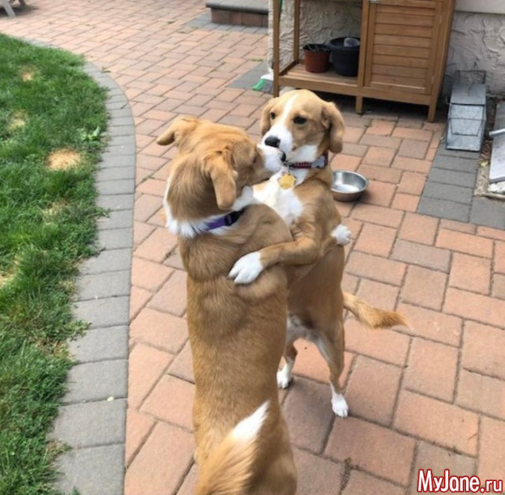 10. «Моя собака впервые встретила свою сестру после того, как их разлучили в приюте. Они обнимаются уже 10 минут».