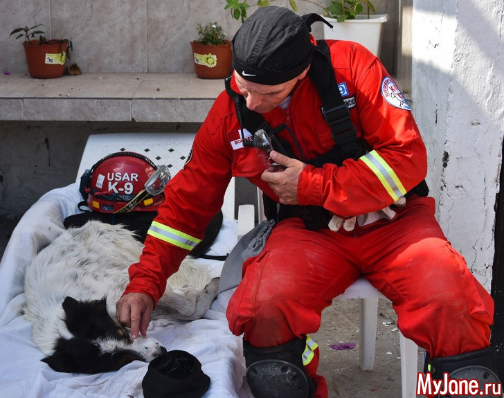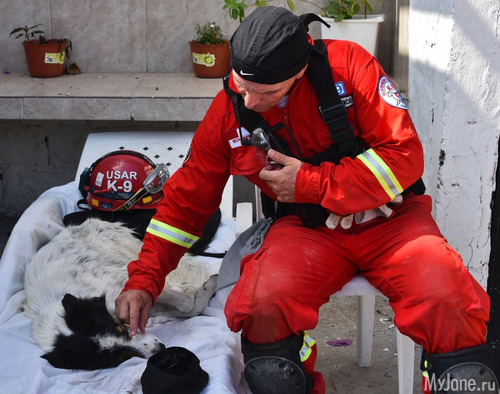 11. Собака спит в промежутках между поисками выживших во время землетрясения в Эквадоре.