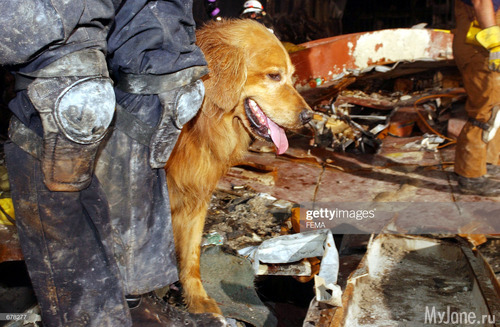 17. Кент Олсон и его собака Гром ищут выживших среди жертв теракта 11 сентября во Всемирном торговом центре.
