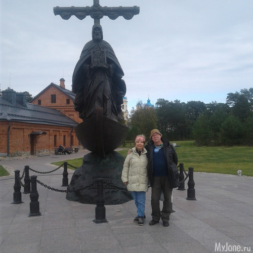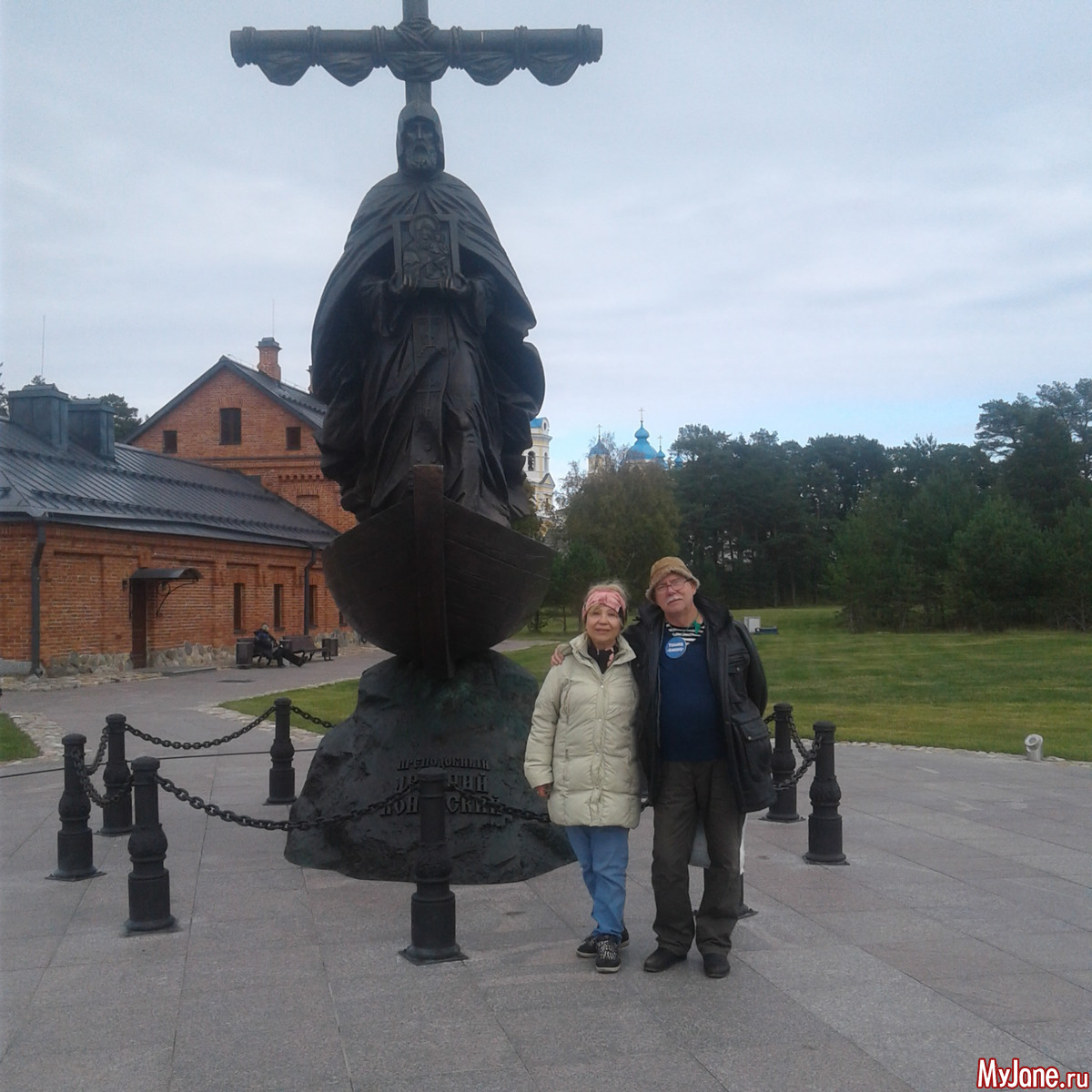 У памятника Преподобному Арсению Коневецкому - основателю обители.