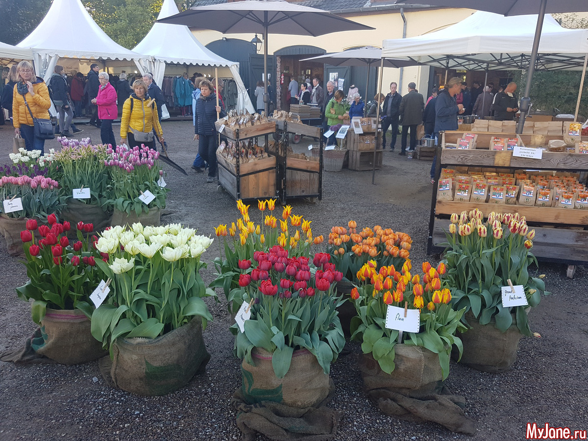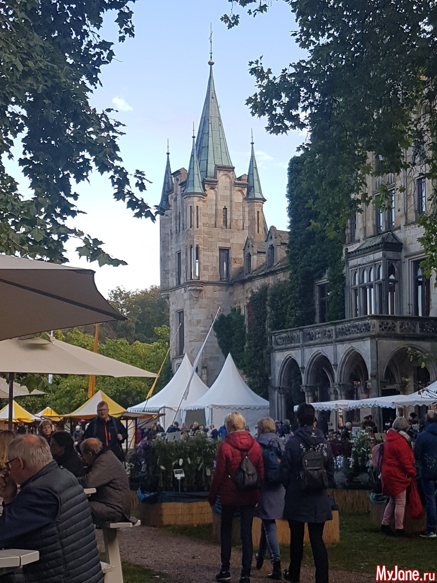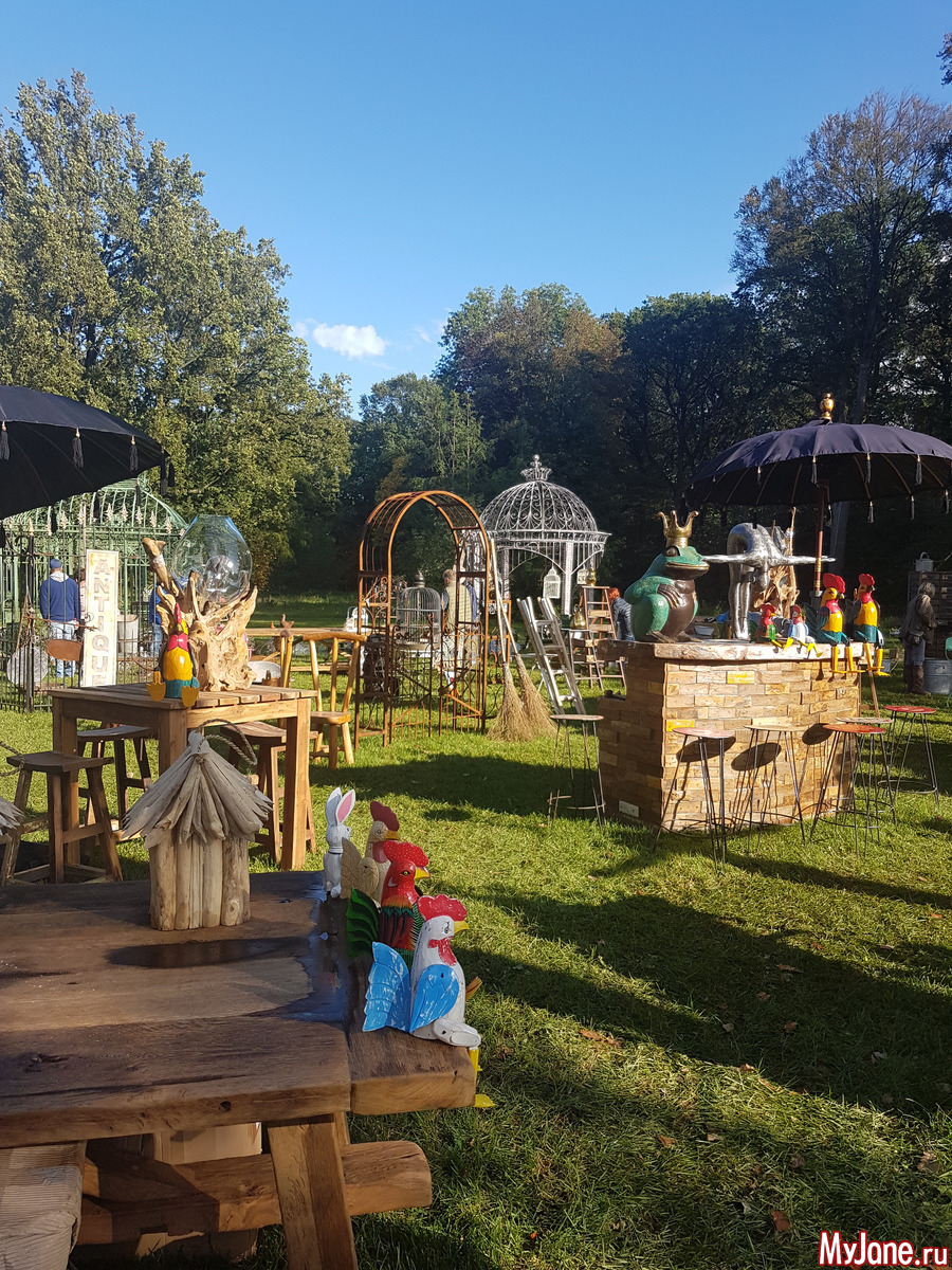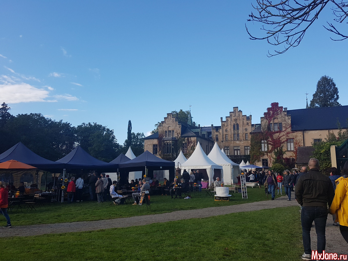 На территории замка разбивают палатки, где можно перекусить и купить растения и декор для сада.