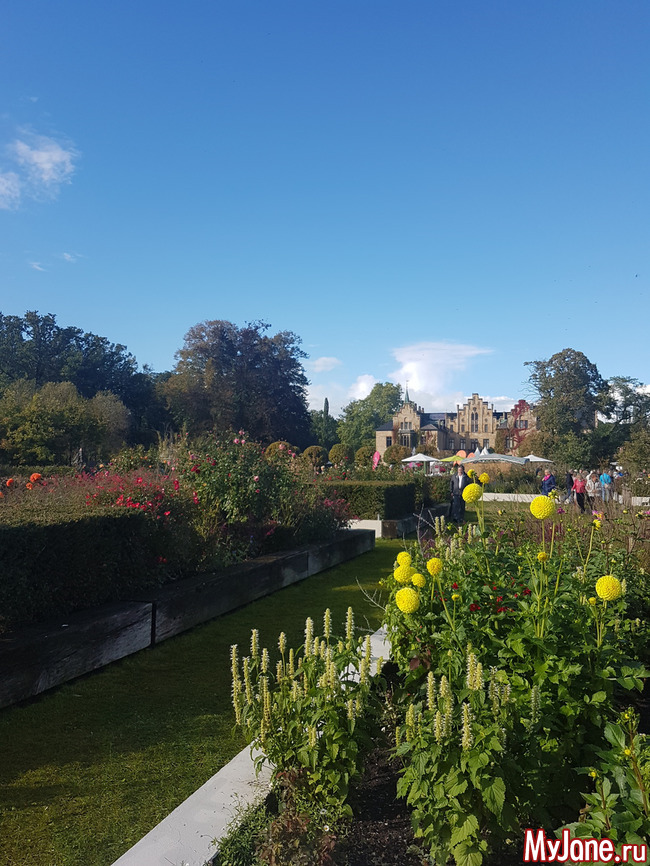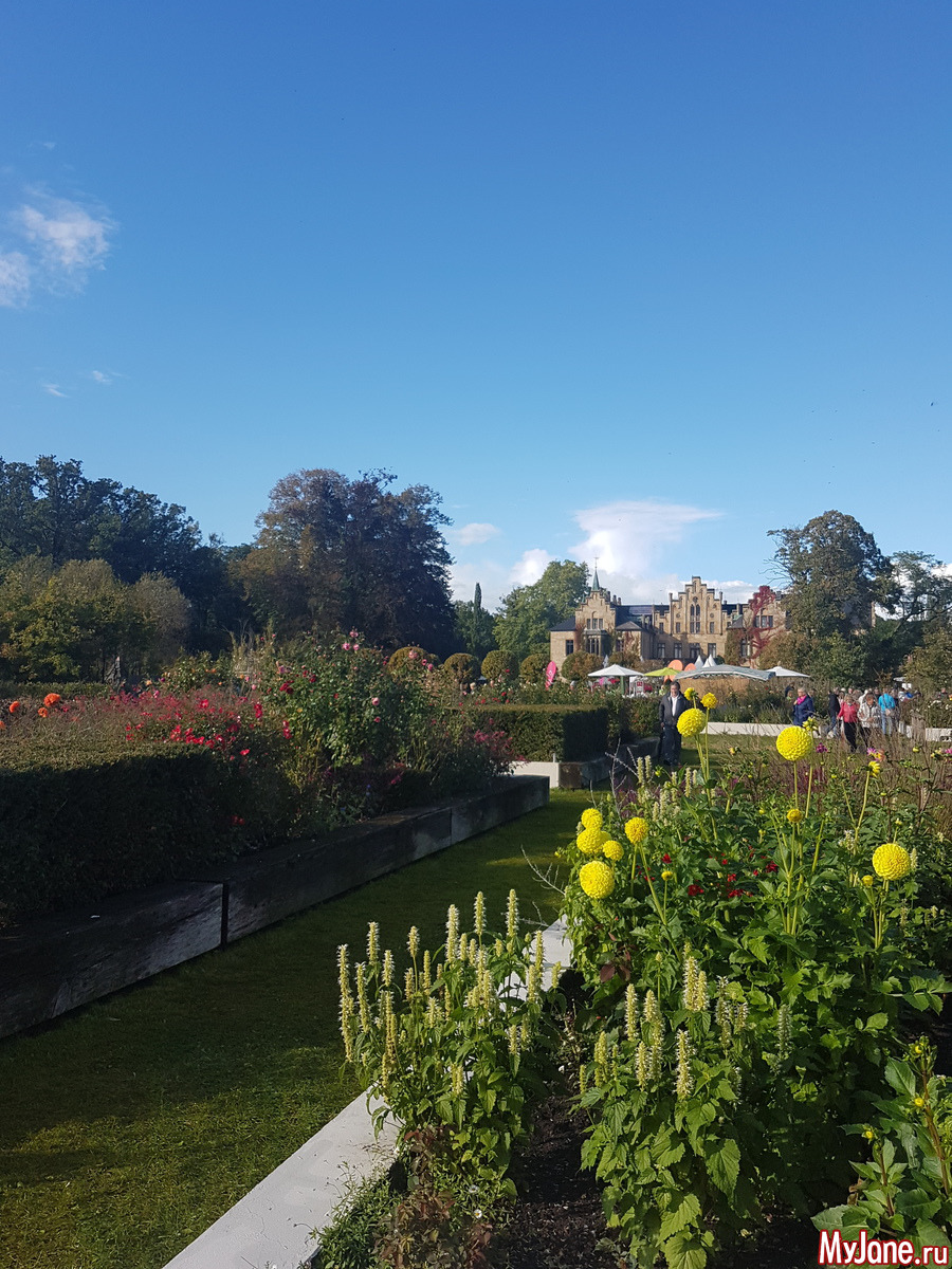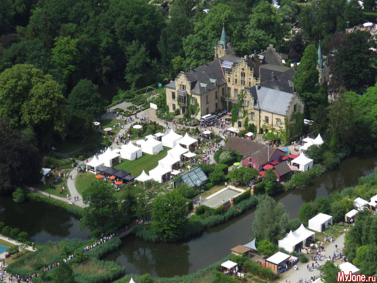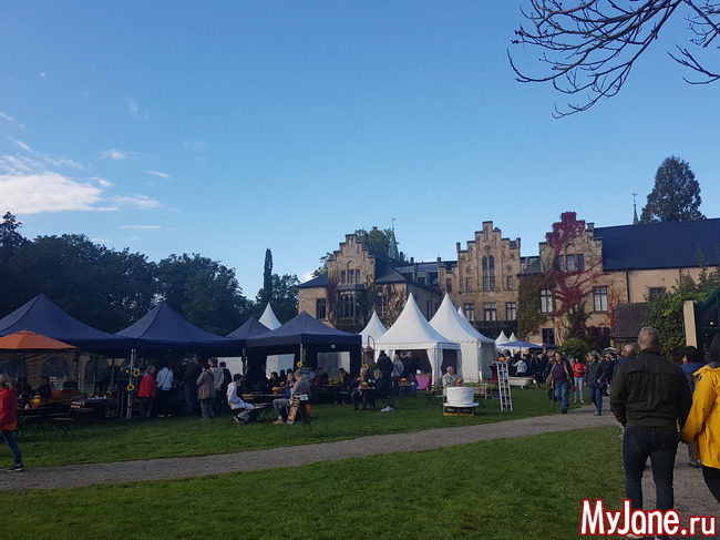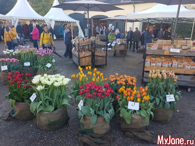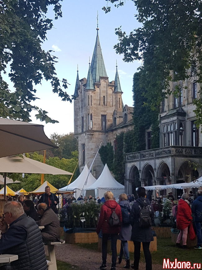 На территории замка разбивают палатки, где можно перекусить и купить растения и декор для сада.