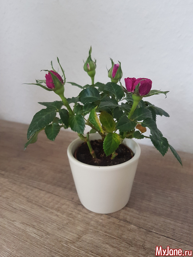 Два полураскрывшихся бутончика усохли и листочки начали желтеть. Вот взяла её домой.