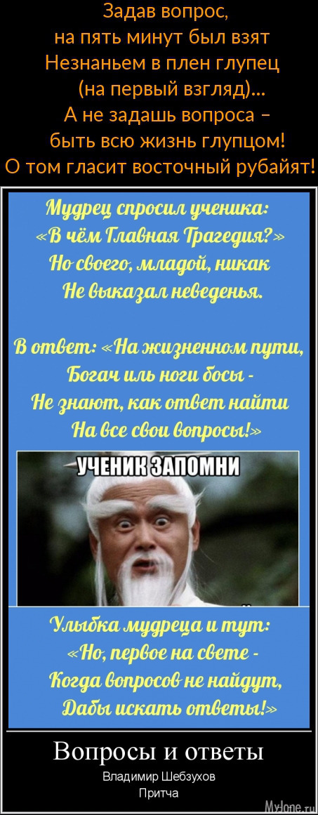 А не задашь вопроса – быть всю жизнь глупцом! ..