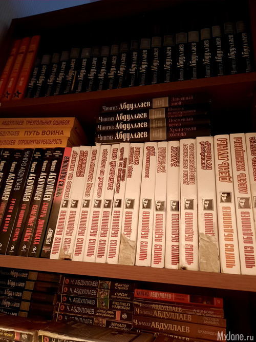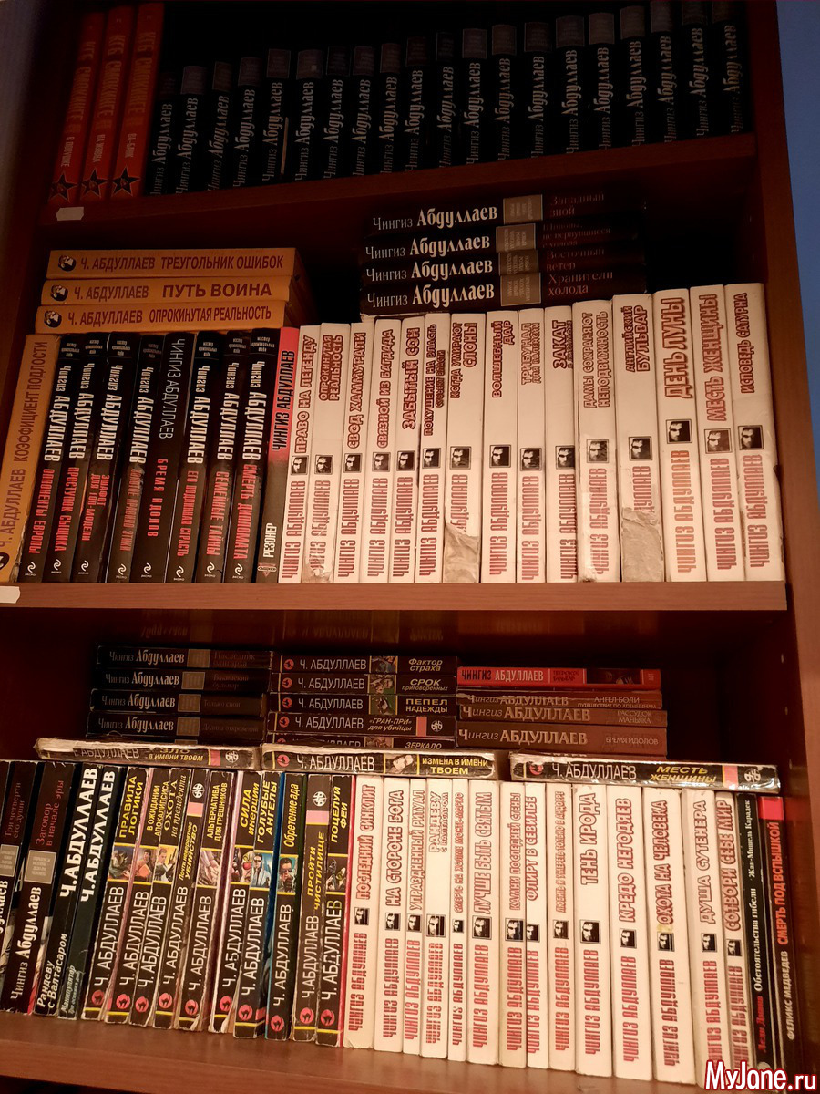 Мой любимый Абдуллаев, мои книги, три полки в два ряда.