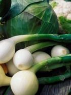 На 10 банок (0,5 л): 1,3 кг белокочанной капусты, 1,2 кг сладкого зеленого перца, 500 г репчатого лука, 2,2 кг зеленых томатов, 600 г уксуса (6%), 300 г сахара, 60 г соли, 1 ч.л. сухой горчицы.