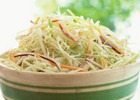 На 10 банок (0,5 л): 3 кг белокочанной капусты, 1 кг болгарского перца, 1 кг моркови, 800 г репчатого лука, 460 г растительного масла, 480 г уксуса (6%), лаврушка, перец душистый, гвоздика, соль, сахар.