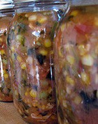 1 кг фасоли, 3 кг помидоров, 500 г репчатого лука, 500 г моркови, 500 г болгарского перца, 2 небольших стручка горького перца, 1 стак. сахара, 1 стак. растительного масла, 1 ч.л. свежемолотого черного перца, 6 лавровых листов, соль, уксус по вкусу.