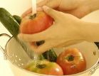 9 кг сладкого перца, нарезанного кусочками 3x4 см, 3 кг мелких помидоров, 50-60 г зелени петрушки.