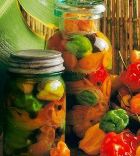 На 3-литровую банку: 7-8 свежих огурцов, 3-4 помидора, 2-3 луковицы, 5-6 долек чеснока, 1 корешок петрушки, 1 корешок сельдерея.
