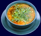 500 г свинины, 100 г фасоли, 100 г квашеной капусты, по 1 шт. петрушки и моркови, 1 головку лука, 2 ст. ложки томат-пюре, 1,5 ст. ложки жира, 100 г сметаны