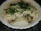 4-5 шт. картофеля, 4-5 шт. репчатого лука, 400-500 г мяса, 400-500 г свежих грибов, 200 г сыра, 250 г майонеза, 3 ст. ложки масла.