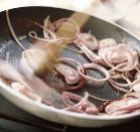 100 г отварного мяса, 100 г репчатого лука, 100 г редьки, растительное масло.
