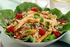 Куриное филе - 200 г, 1 зеленое яблоко, 1 апельсин, ветчина - 100 г, 1 свежий огурец, тертый сыр - 2 ст. ложки.