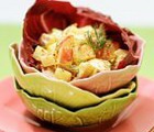 1 кг куриного филе, 300 г винограда, 2 картофелины, 2 луковицы, 250 г сметаны, лимонный сок, соль, перец и специи по вкусу.