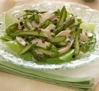 200 г отварного куриного филе, 1 кабачок, 1 стручок сладкого перца, 4 ст.л. сметаны, зеленый лук, укроп, растительное масло, соль, молотый черный перец.